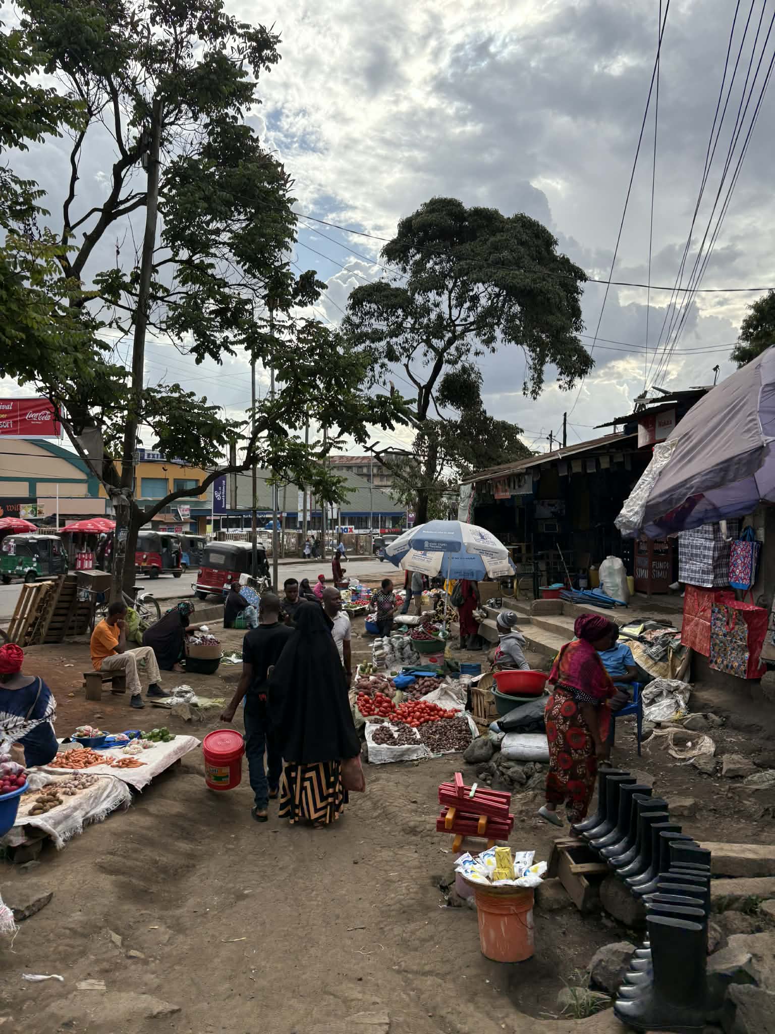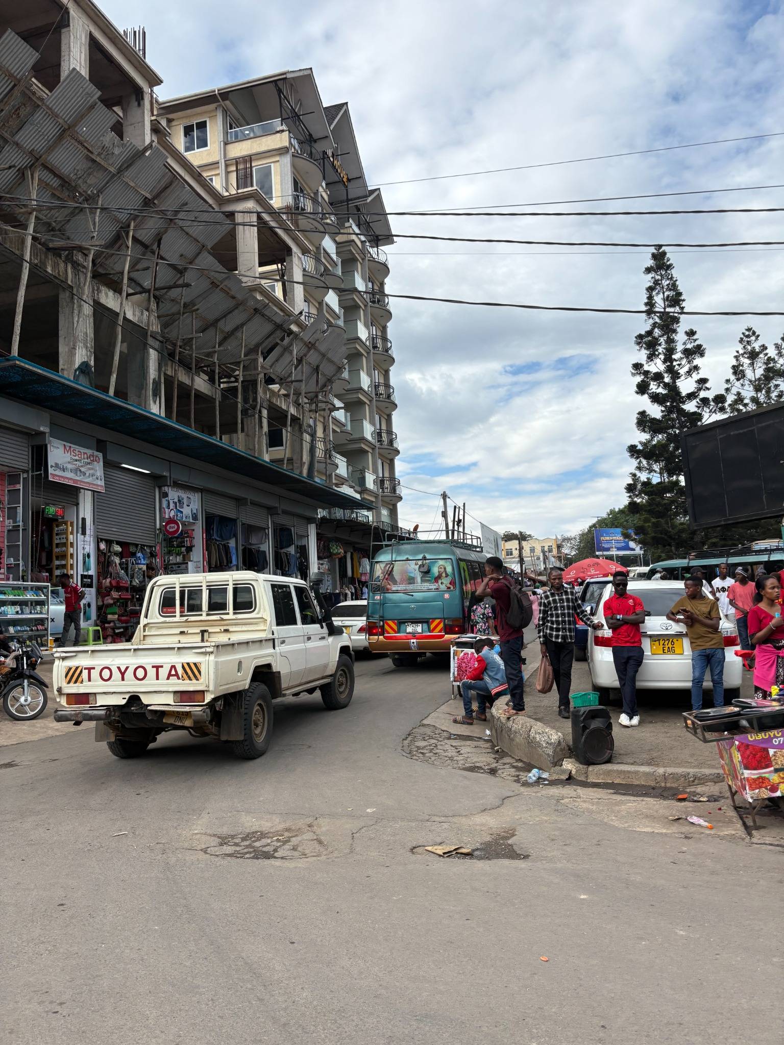 Arusha je špinavá, hlučná a opravdová. Nic nepředstírá. Není tu památka, kvůli které bys vytáhl foťák, ale je tu život. Africkej. Ulice plné lidí, trhy, prach, hudba, motory aut a motorek. Fotím všechno. Žije tu dva miliony lidí, mám však pocit, že jsou dneska venku ÚPLNĚ všichni. V Africe se žije venku. Doma není co dělat. Nakupuji něco na trzích, ale pak jsem ráda, že už jdeme pryč, protože se na vás všichni pověsí a musíte všechno koupit, protože zrovna DNESKA mají slevu…jasně. Spíš mě baví se jen tak potulovat a pozorovat.